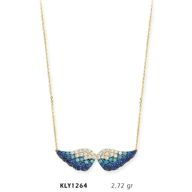 14 Ayar Altın Mavi Melek Kanadı Kolye KLY1264