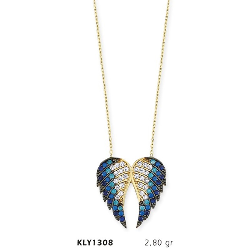 14 Ayar Altın Mavi Melek Kanadı Kolye KLY1308