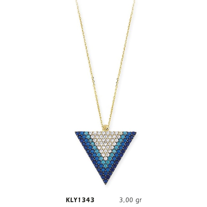 14 Ayar Altın Mavi Üçgen Kolye KLY1343