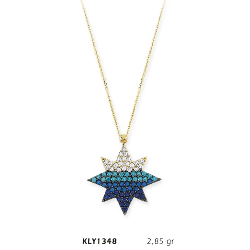 14 Ayar Altın Mavi Yıldız Kolye KLY1348