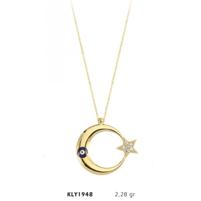 14 Ayar Altın Mineli Ay Yıldız Kolye KLY1948