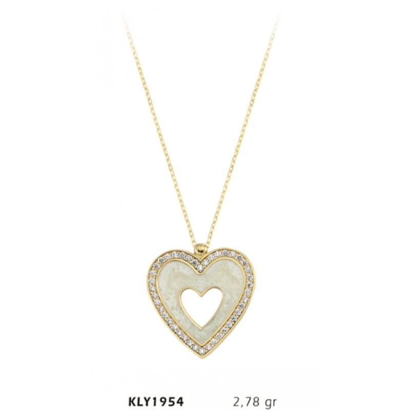 14 Ayar Altın Mineli Kalp Kolye KLY1954
