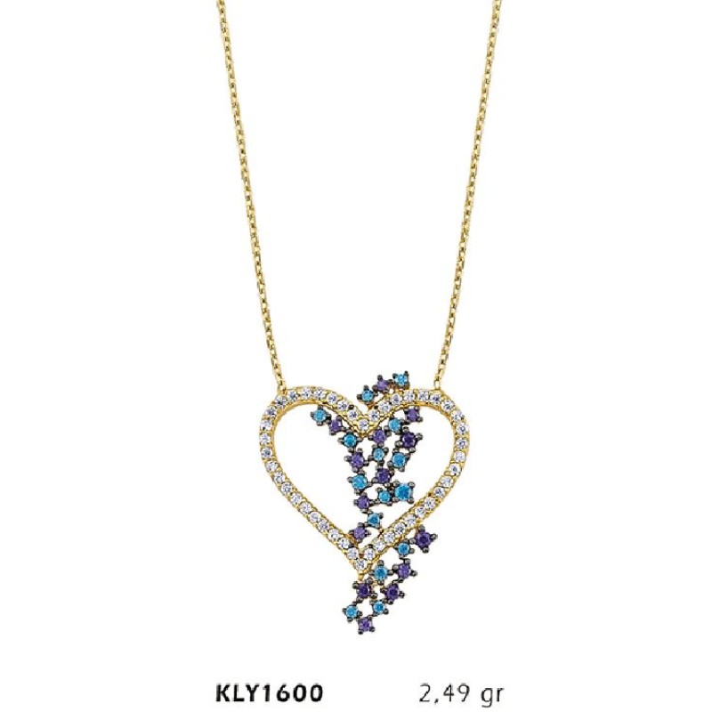 14 Ayar Altın Minik Taşlı Kalp Kolye KLY1600