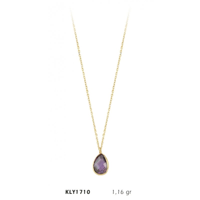 14 Ayar Altın Mor Damla Taş Kolye KLY1710