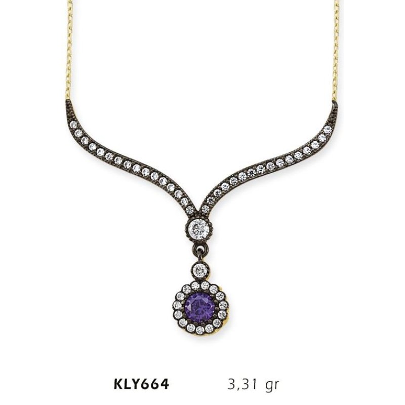 14 Ayar Altın Mor Taşlı Otantik Kolye KLY664