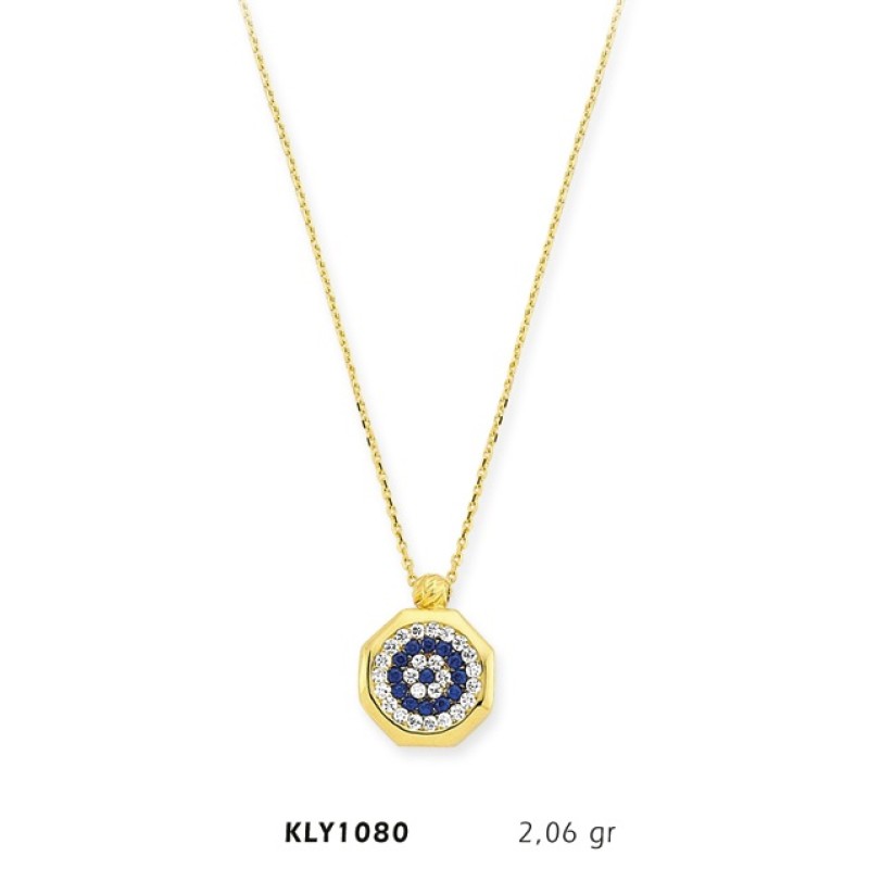 14 Ayar Altın Nazar Boncuğu Kolye KLY1080
