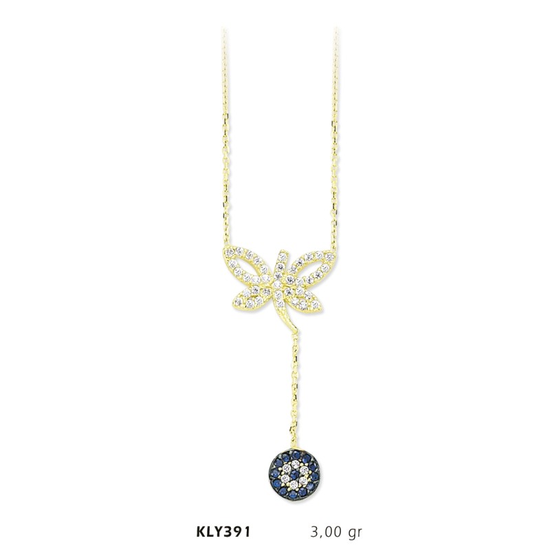 14 Ayar Altın Nazar Boncuğu Yusufçuk Kolye KLY391