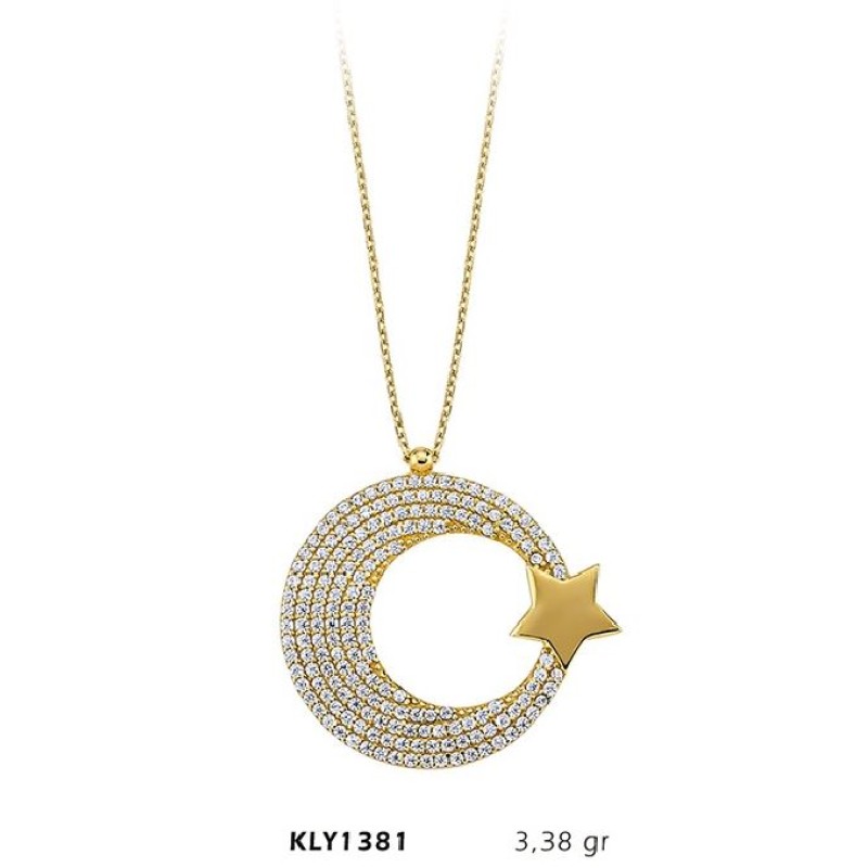 14 Ayar Altın Taşlı Ay Yıldız Kolye KLY1381