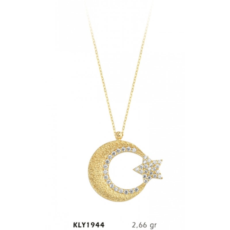 14 Ayar Altın Taşlı Ay Yıldız Kolye KLY1944