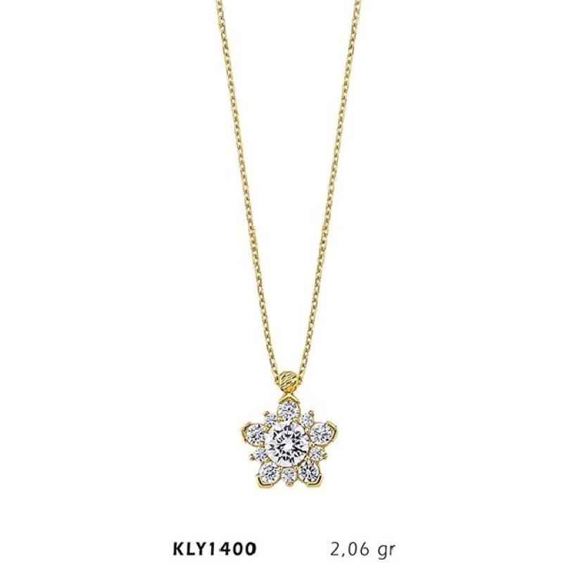 14 Ayar Altın Taşlı Çiçek Kolye KLY1400