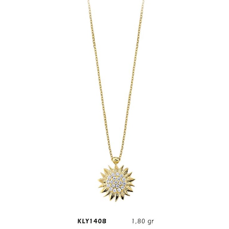 14 Ayar Altın Taşlı Güneş Kolye KLY1408
