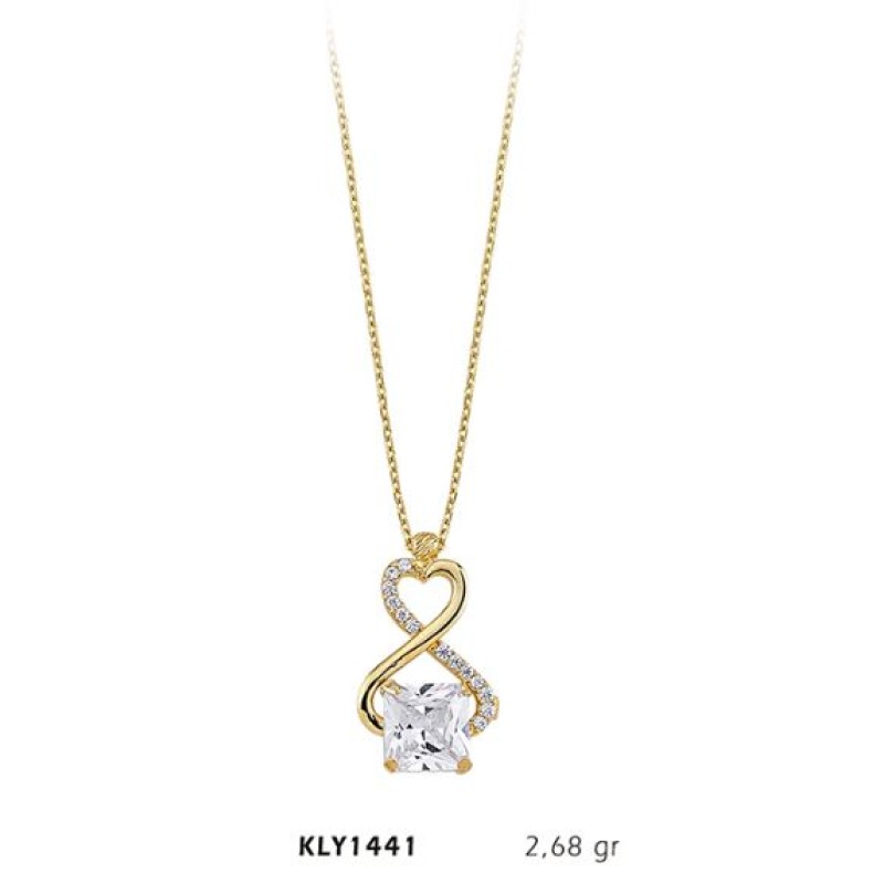 14 Ayar Altın Taşlı Kalp Kolye KLY1441
