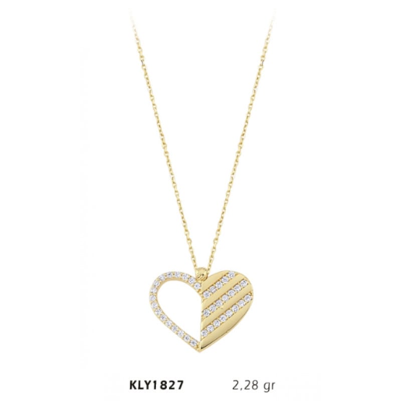 14 Ayar Altın Taşlı Kalp Kolye KLY1827