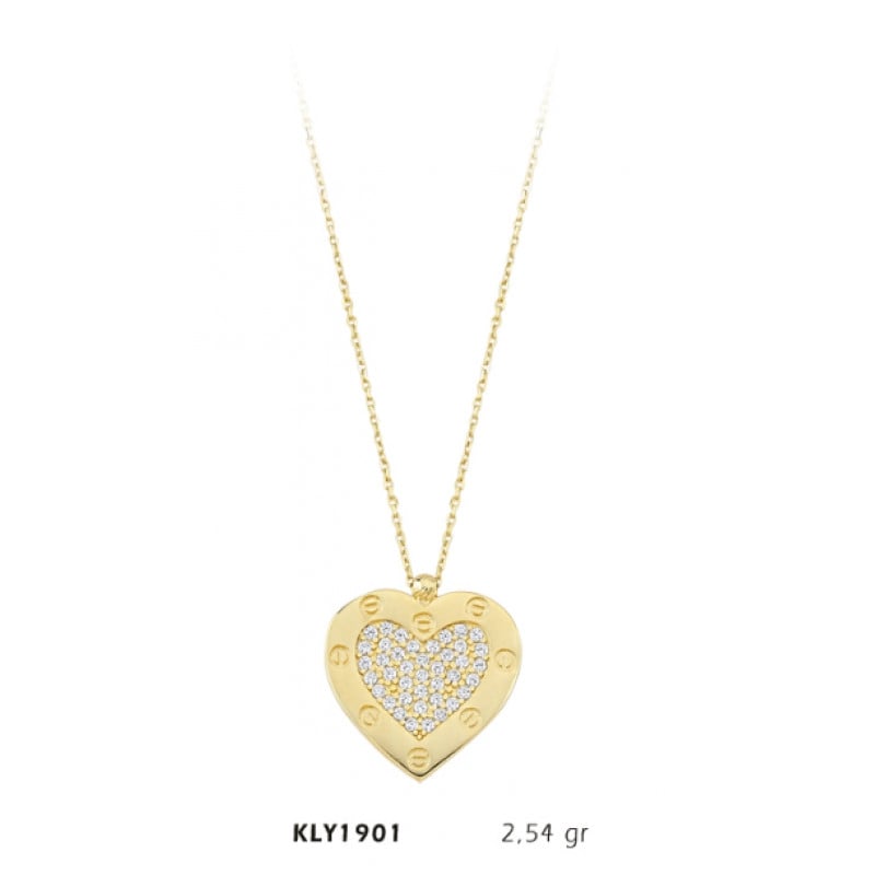14 Ayar Altın Taşlı Kalp Kolye KLY1901