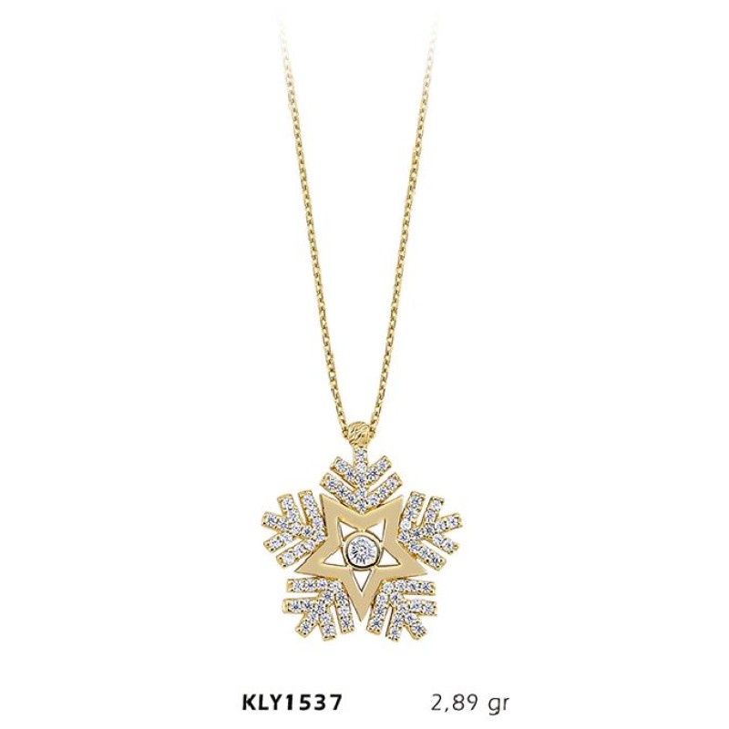 14 Ayar Altın Taşlı Kar Tanesi Kolye KLY1537