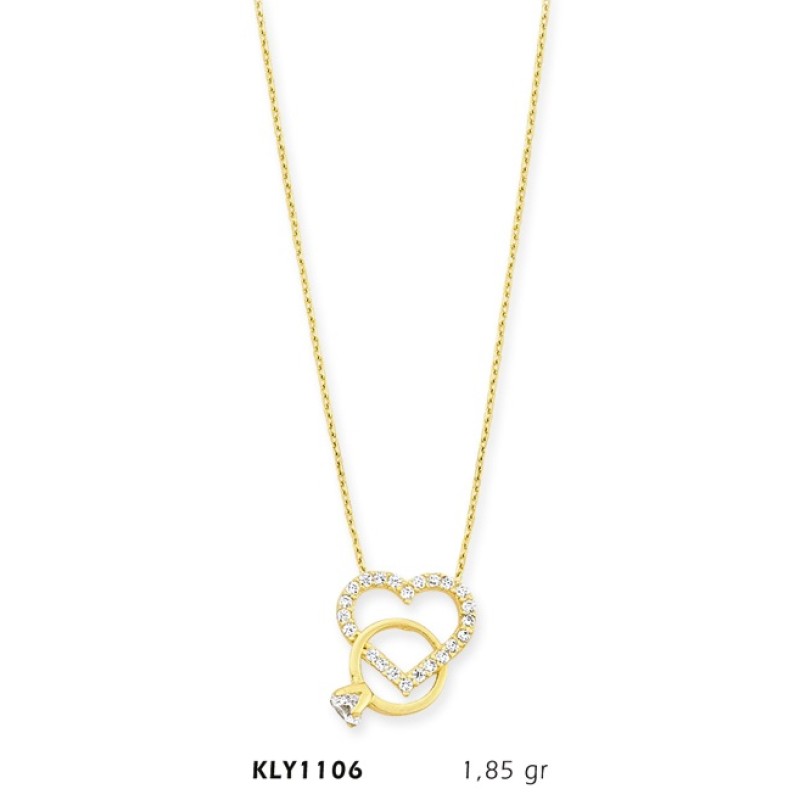 14 Ayar Altın Tektaş Yüzük Kalp Kolye KLY1106