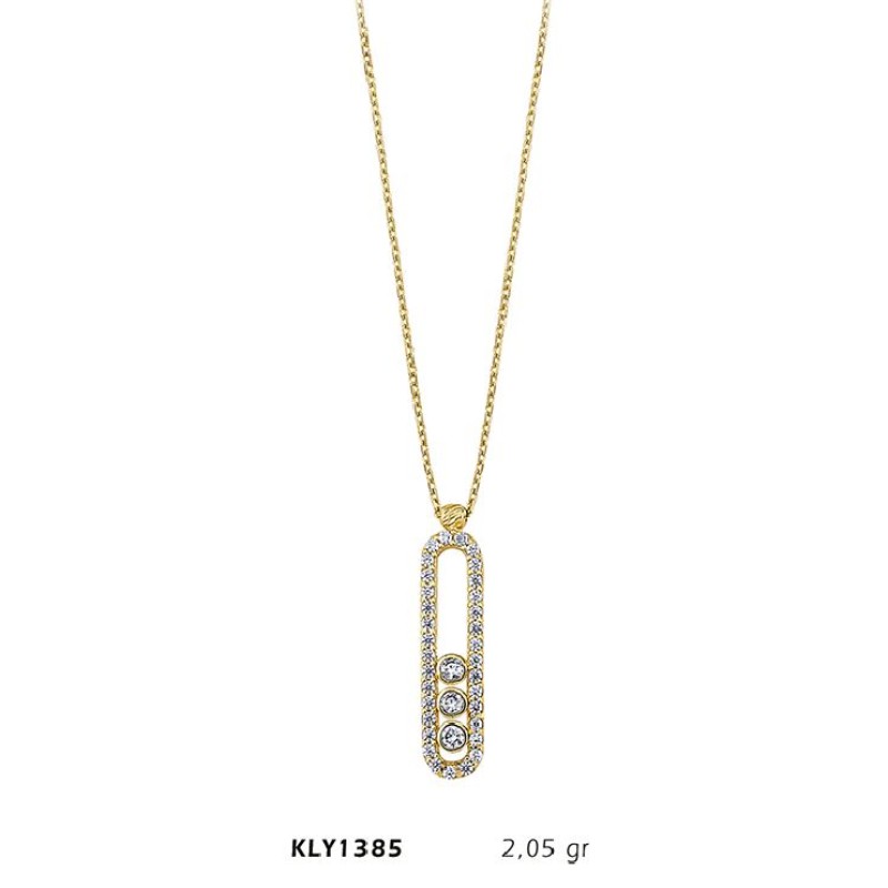 14 Ayar Altın Üç Taşlı Kolye KLY1385