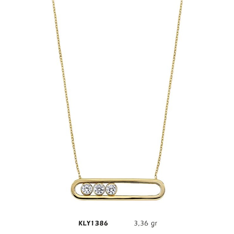 14 Ayar Altın Üç Taşlı Kolye KLY1386