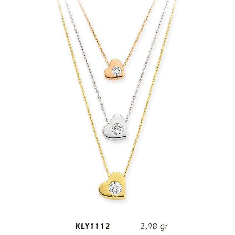 14 Ayar Altın Üçlü Tektaş Kalp Kolye KLY1112