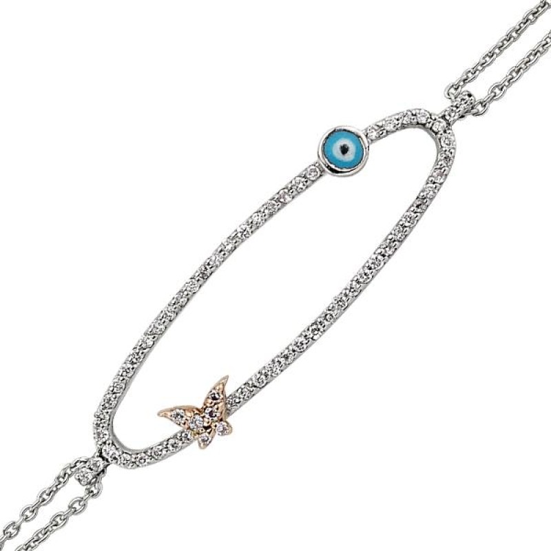 18 Ayar Altın Pırlanta Nazar Kelebek Bileklik 48548