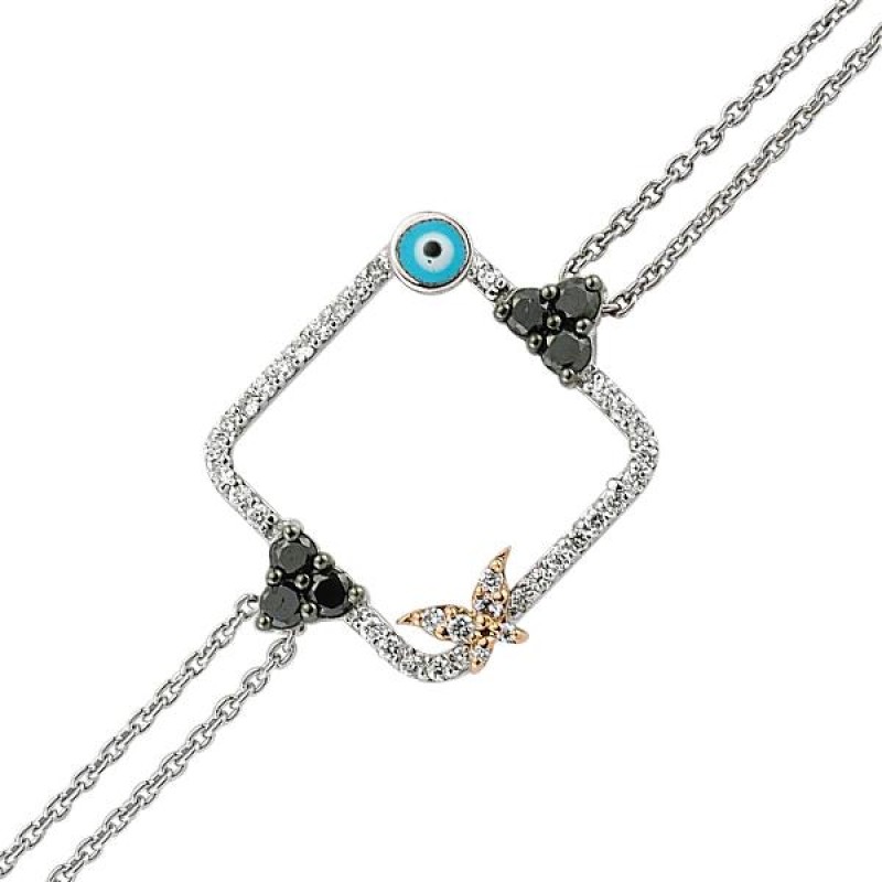 18 Ayar Altın Pırlanta Nazar Kelebek Bileklik RMB101