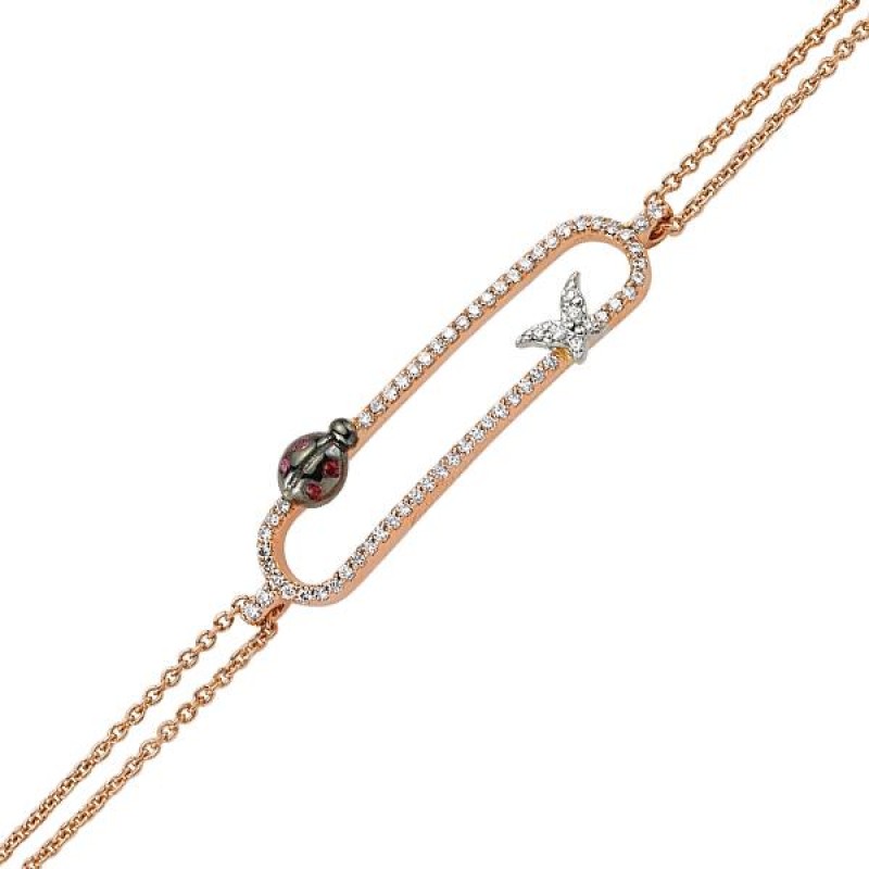 18 Ayar Altın Pırlanta Uğur Böceği Ve Kelebek Kolye 47233-2