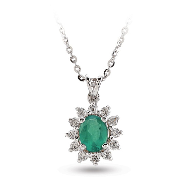 0.45 Ct Pırlanta Zümrüt Taşlı Kolye RTKL29