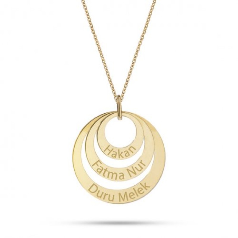 14 Ayar Altın Yuvarlak Üç İsim Kolye - AD40