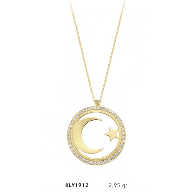 14 Ayar Altın Ay Yıldız Kolye KLY1912