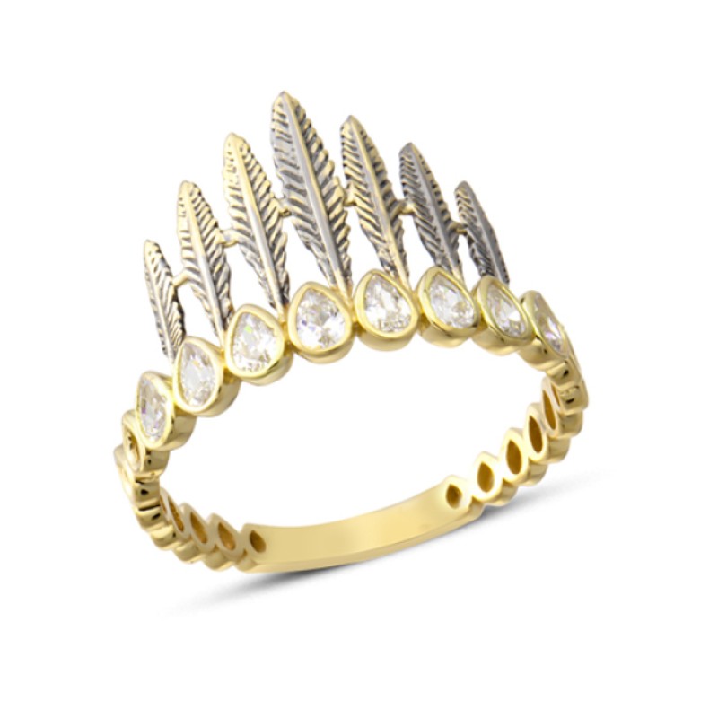 14 Ayar Altın Tüy Başlıklı Taşlı Yüzük YZK386