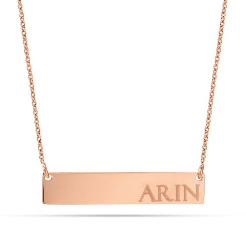 14 Ayar Altın Yatay Plaka İsim Kolye - AD39