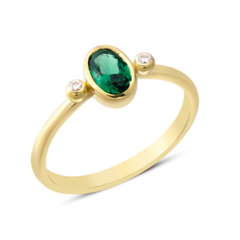 14 Ayar Altın Yeşil Taşlı Oval Yüzük YZK372B