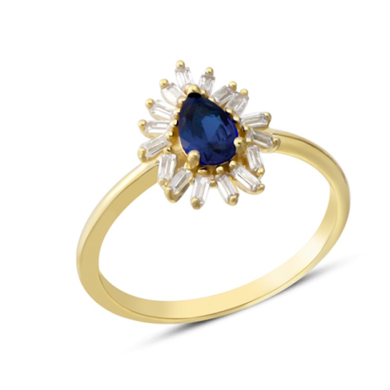 14 Ayar Altın Baget Yapraklı Damla Taş Yüzük YZK388
