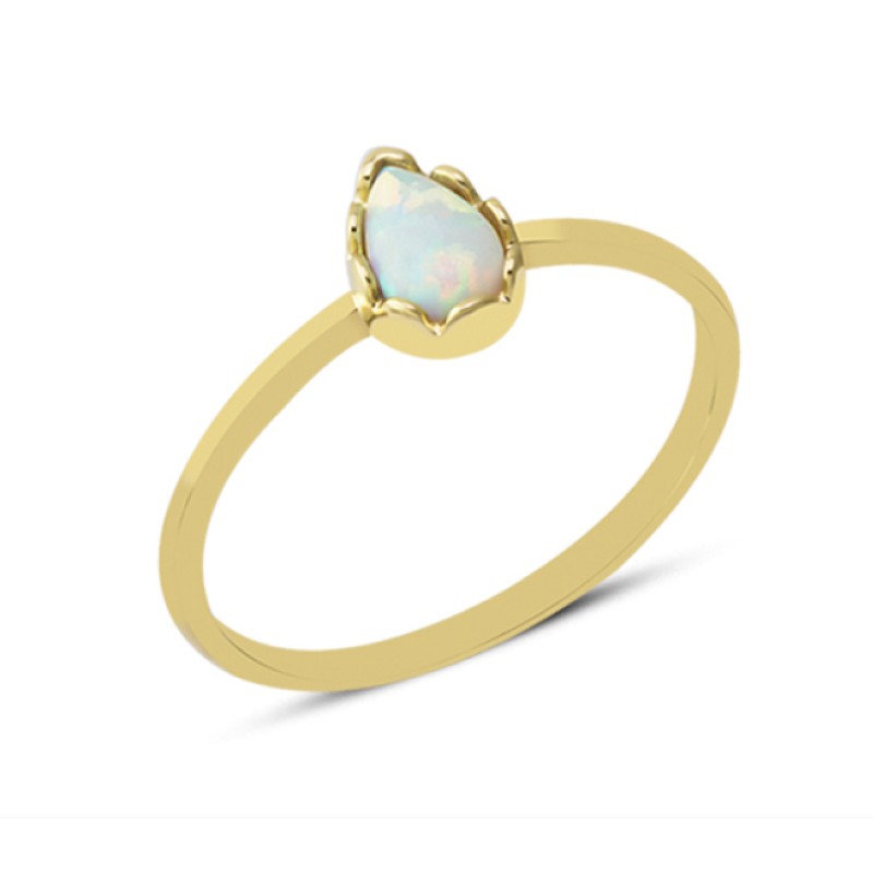 14 Ayar Altın Beyaz Damla Taşlı Minimal Yüzük YZK005