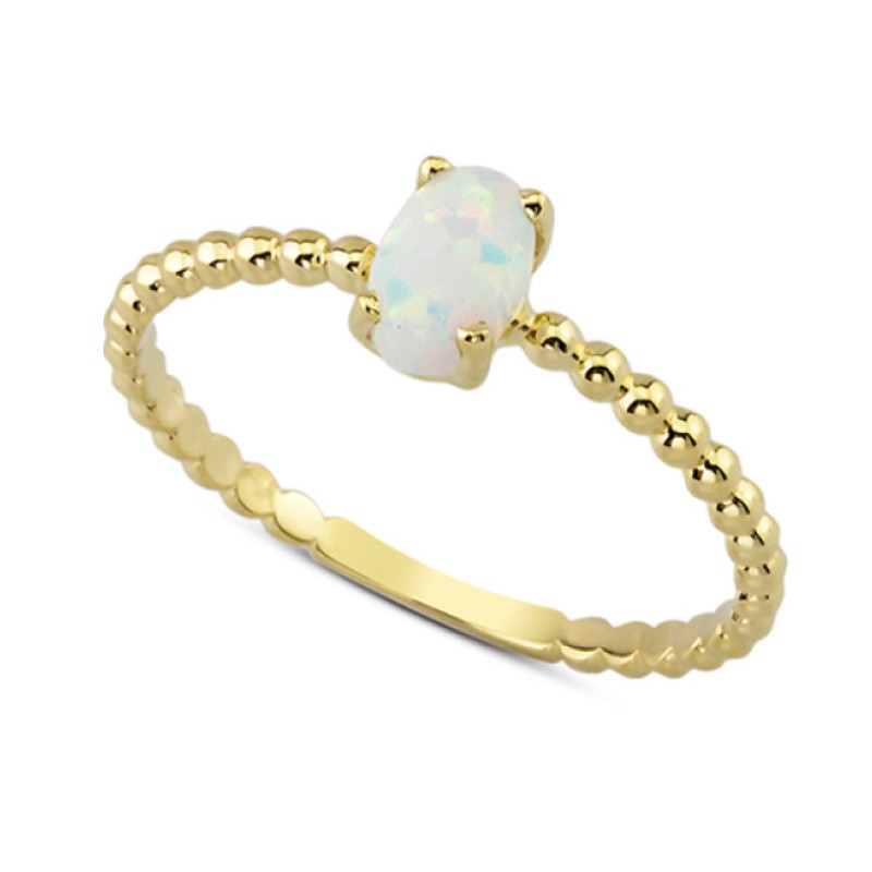 14 Ayar Altın Beyaz Oval Taşlı Minimal Yüzük YZK004