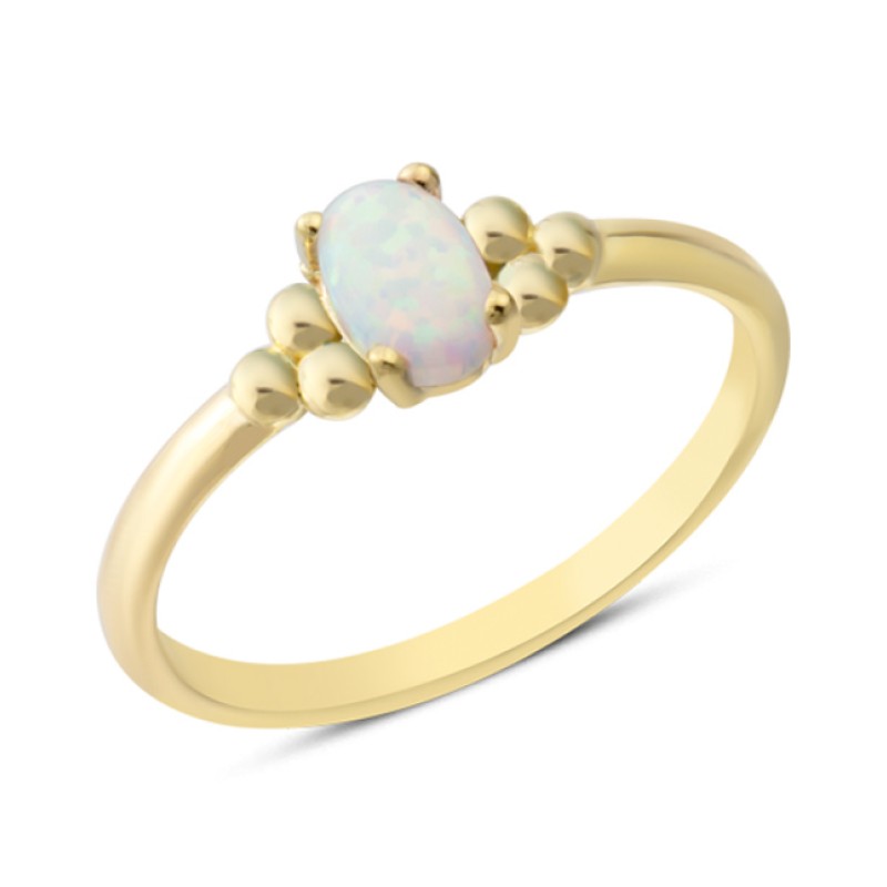 14 Ayar Altın Beyaz Oval Taşlı Top Yüzük YZK375B