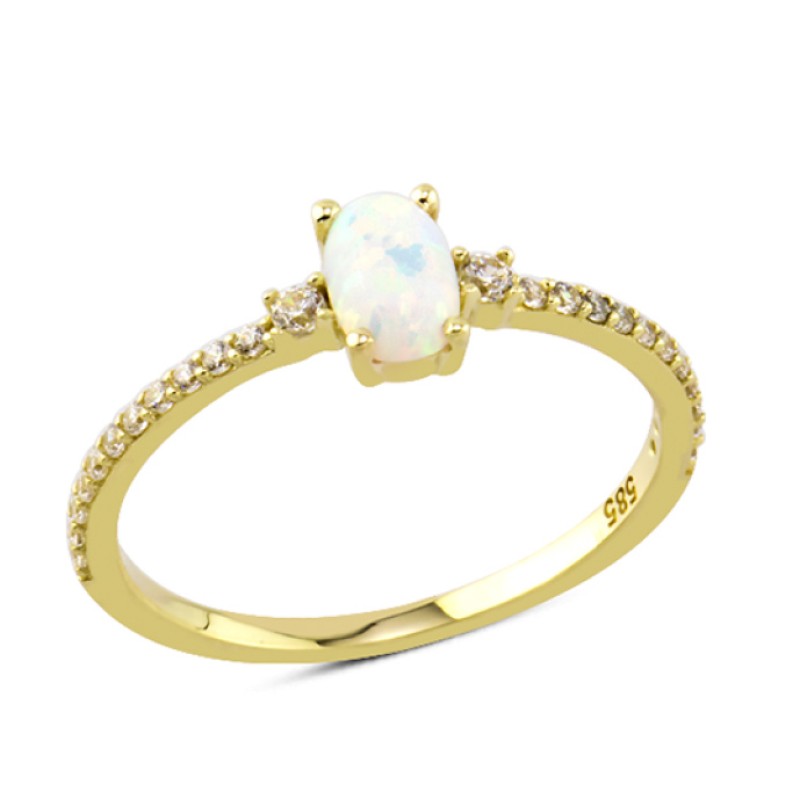 14 Ayar Altın Beyaz Oval Yan Taşlı Yüzük YZK099A