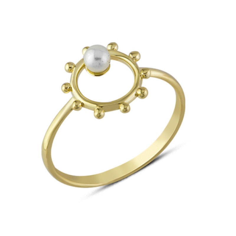 14 Ayar Altın İnci Detaylı Yüzük YZK299