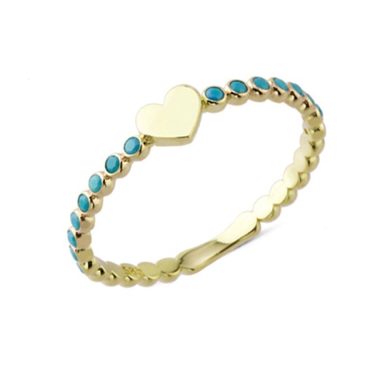 14 Ayar Altın Kalpli Mavi Mini Taşlı Yüzük YZK109C