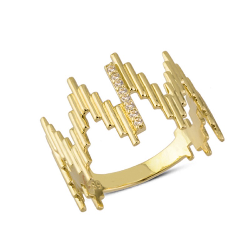 14 Ayar Altın Karışık Çizgili Yüzük YZK158