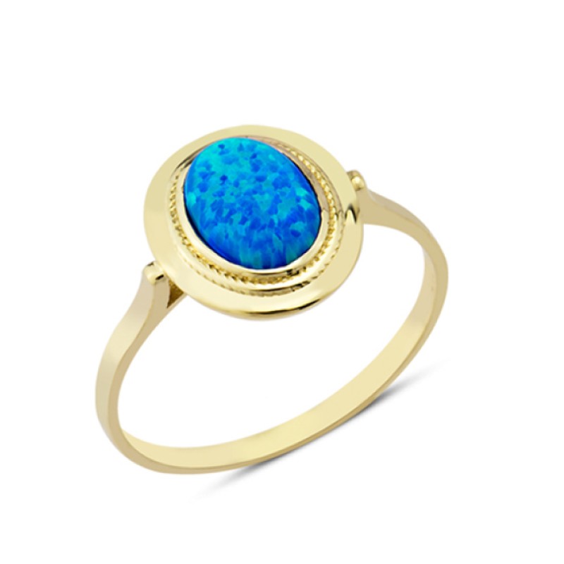 14 Ayar Altın Mavi Taşlı Çerçeveli Yüzük YZK057B