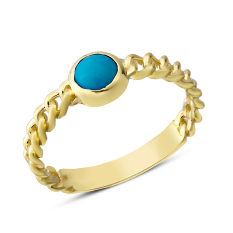 14 Ayar Altın Mavi Taşlı Zincir Kollu Yüzük YZK385