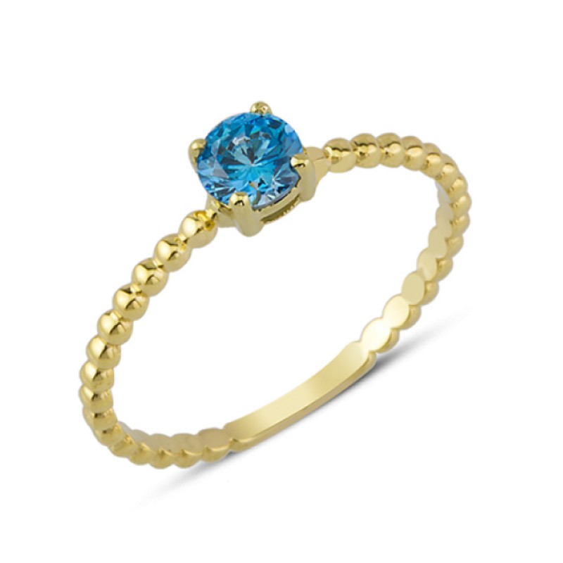 14 Ayar Altın Mavi Yuvarlak Taşlı Yüzük YZK011B