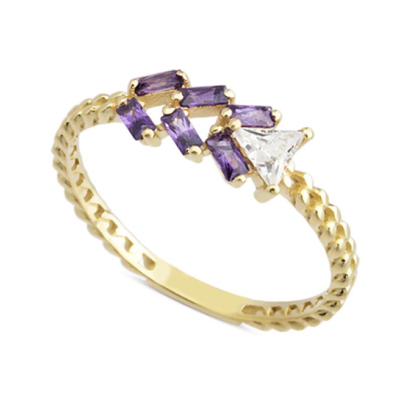 14 Ayar Altın Mini Mor Baget Taşlı Yüzük YZK028B