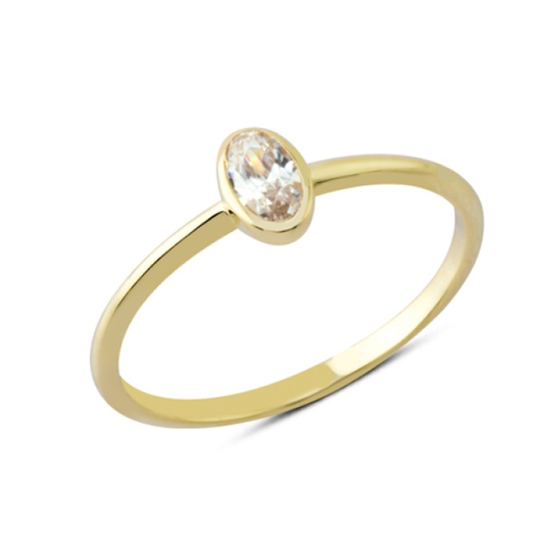 14 Ayar Altın Sıvamalı Beyaz Oval Taşlı Yüzük YZK113B