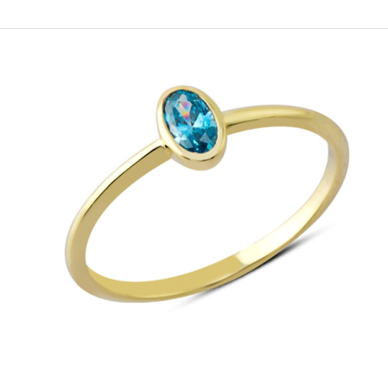 14 Ayar Altın Sıvamalı Mavi Damla Taşlı Yüzük YZK113A