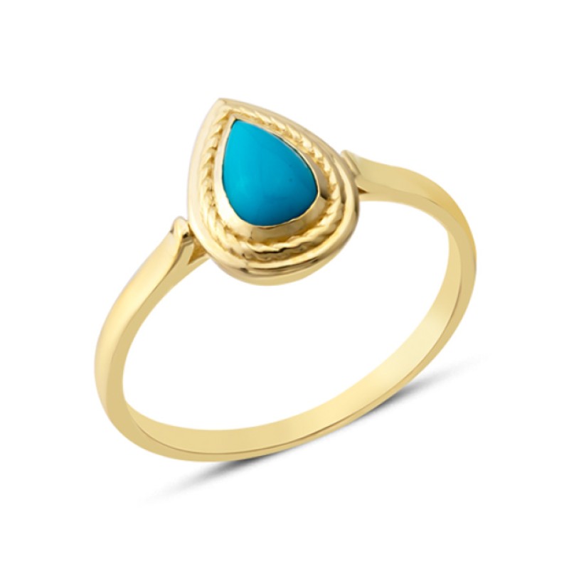 14 Ayar Altın Sıvamalı Mavi Damla Taşlı Yüzük YZK378A