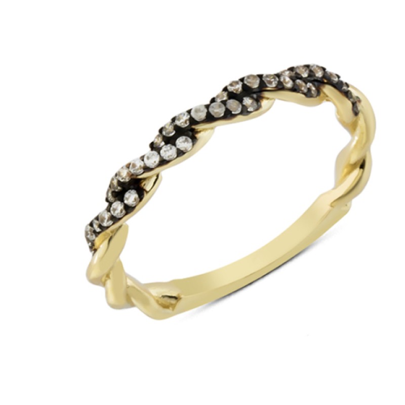 14 Ayar Altın Siyah Beyaz Taşlı Yüzük YZK254