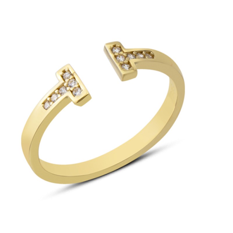 14 Ayar Altın Taşlı Çift Çizgi Yüzük YZK380