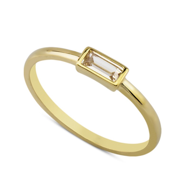 14 Ayar Altın Tek Baget Taşlı Yüzük YZK013